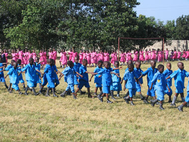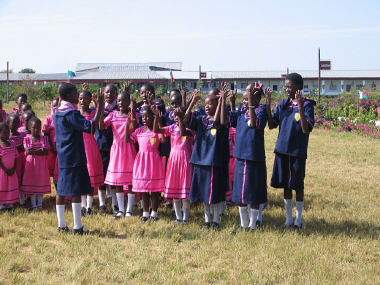 Addresses included those made by the Honourable Minister and both Victor and Genevieve Kanu. Victor spoke about the UN-HABITAT's Sanitation, Hygiene and Water for African Cities programme which is using SSEHV as part of its concerted programme to alleviate water shortages throughout the continent. SSEHV has also now been adopted for UN-HABITAT's Water for Asian Cities programme. Victor announced the drilling of four water holes in different locations across Zambia to provide clean drinking water to areas that are currently deprived of it. He also told the assembled delegates, parents and local dignitaries that the International Selection Committee of Business Directions (BID), made up of a group of companies and prestigious professionals, has decided to present the World Quality Commitment International Star Award in the Gold Category 2005 to Sathya Sai School, Ndola, Zambia for achievement leadership, quality, innovation and excellence in education and training. Both these declarations were greeted with rapturous applause. He went on to declare that TAISSE is twinning with its UK equivalent, the British Institute of Sathya Sai Education (BISSE). BISSE and TAISSE will collaborate closely on the UN-HABITAT programme, share training and teaching materials and produce joint publications. Gifts were presented to the overseas delegates who had come from countries including USA, Australia, Italy, Turkey, South Africa, Kenya, Zimbabwe and the UK. In the evening a cultural programme was held which included African traditional dance, Indian traditional dance, songs and video. The Mayor spoke very warmly of his extended connection with the Sathya Sai Schools and Victor and Genevieve Kanu's long, dedicated and determined work to build a school for boys, a school for girls, and now also an educational institute on a place that just 12 years ago was barren and dangerous bush-land.